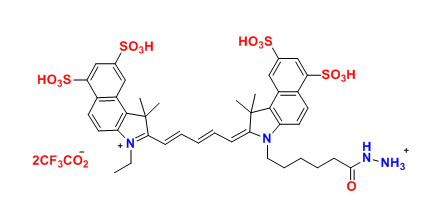 各種花青5.5(Cy5.5)染料已用于標(biāo)記生物分子,用于熒光成像和其他基于熒光的生化分析。 它們廣泛用于標(biāo)記肽,蛋白質(zhì)和寡核苷酸等。Cy5.5染料是最常見的紅色熒光團(tuán)中的一種。 Cy5.5酰肼與羰基反應(yīng)。